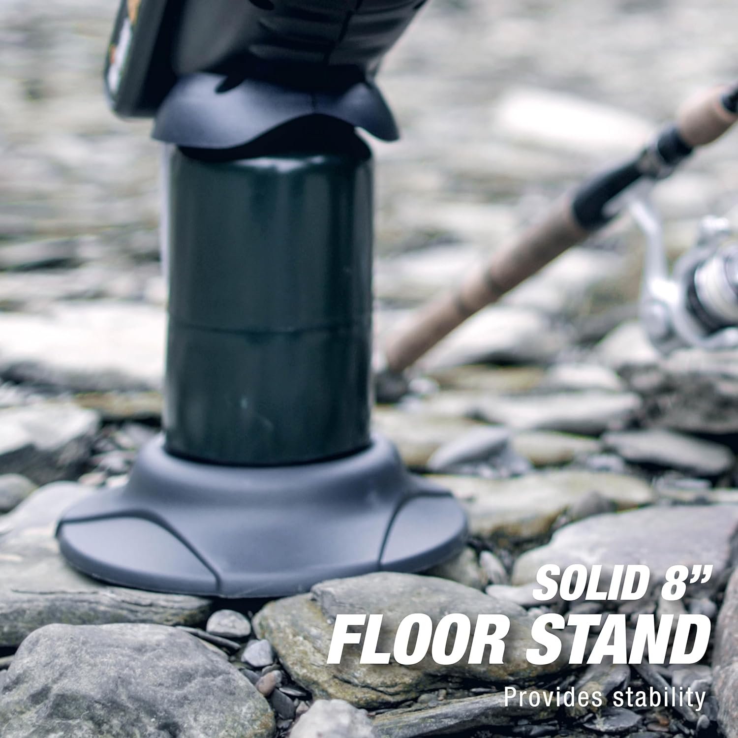 8in round stand; uses little floor space