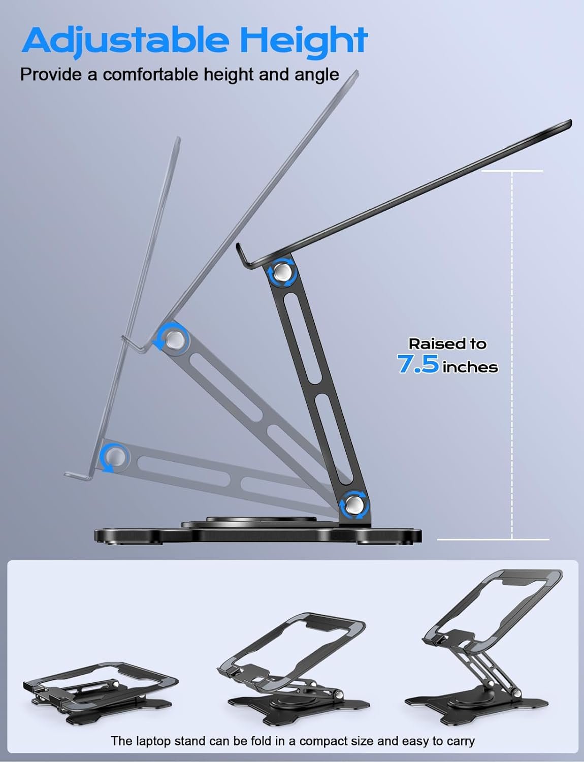 Adjustable Laptop Stand for Desk, 360° Rotating Base Ergonomic Computer Stand, Laptop Riser Foldable Protable for Office Home Fits Compatible with MacBook Pro/Air Notebook up to 10-16″ Black