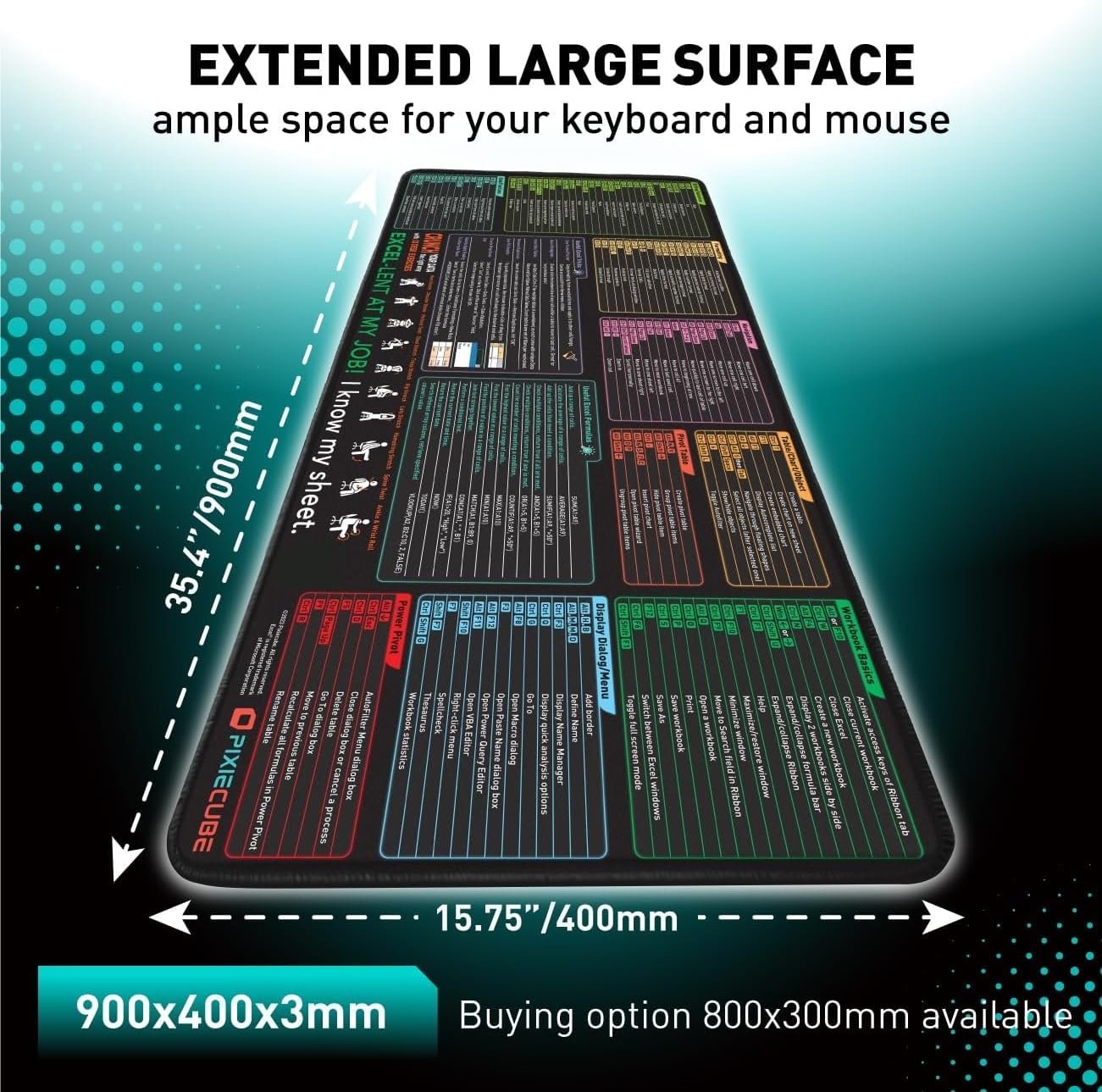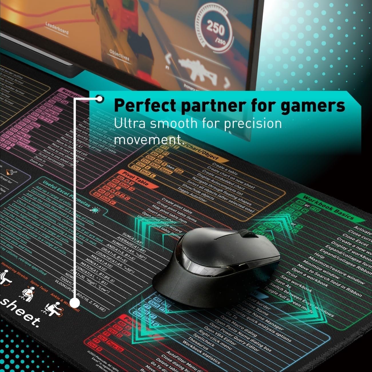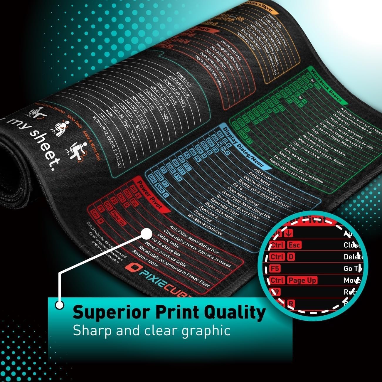 Excel Shortcut Keys Mouse Pad – Extended Large XXL Cheat Sheet Gaming Mousepad | PC Office Spreadsheet Keyboard Mat | Non-Slip Stitched Edge
