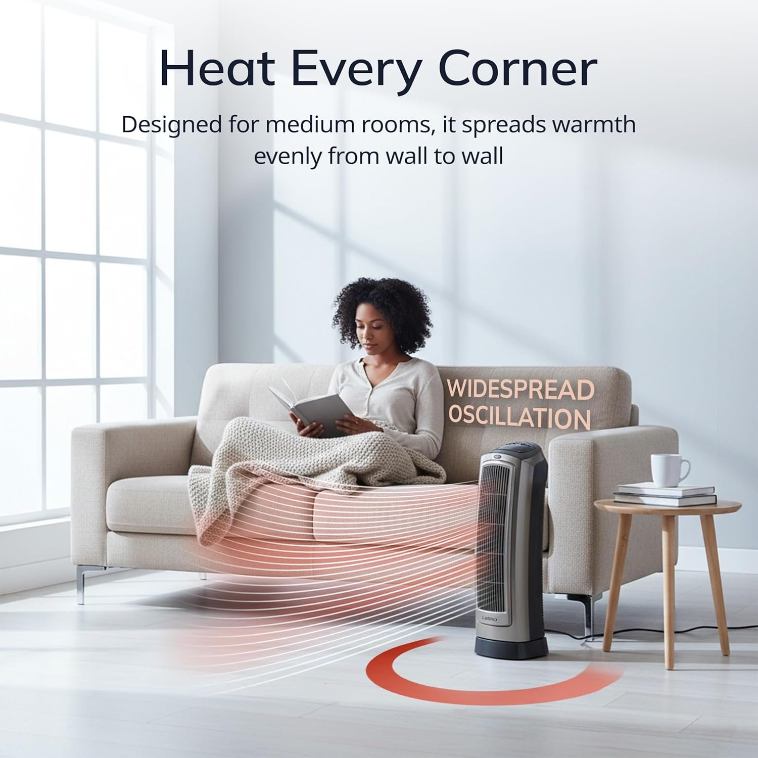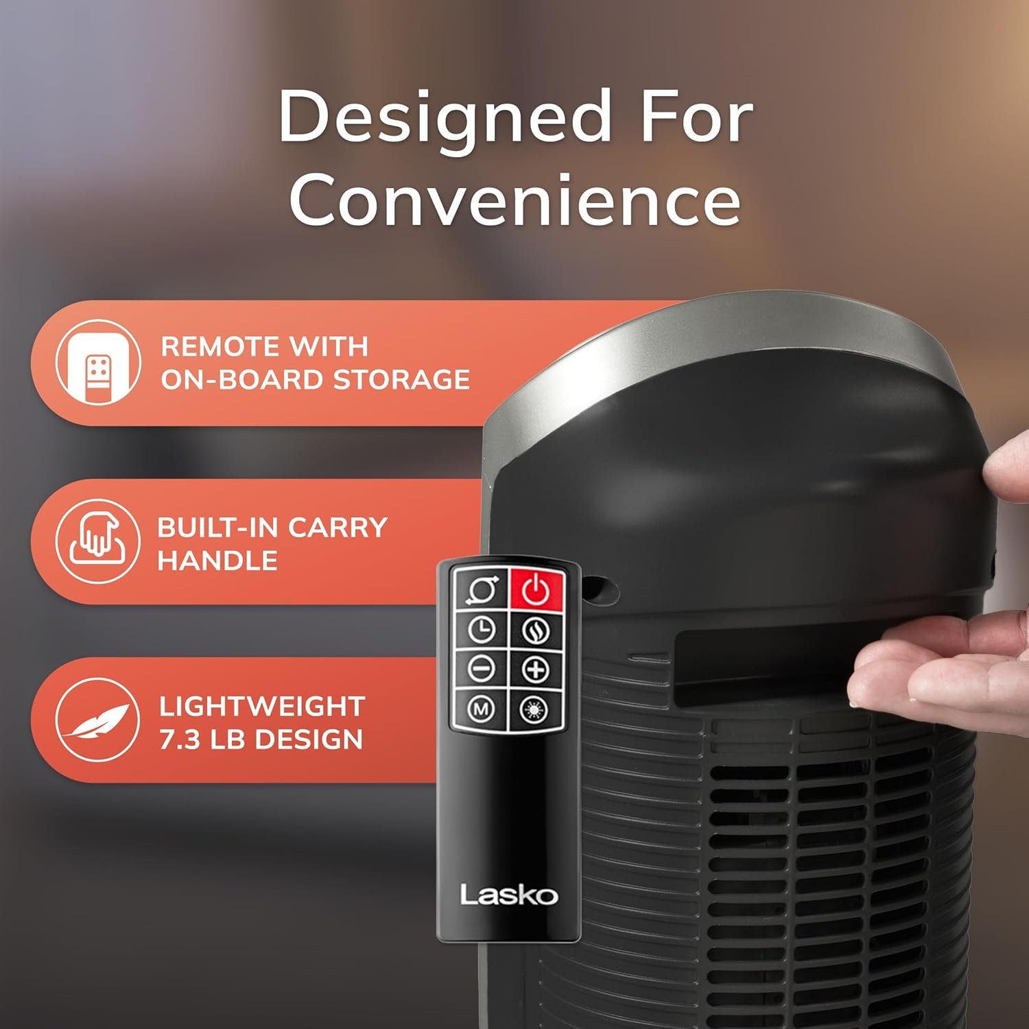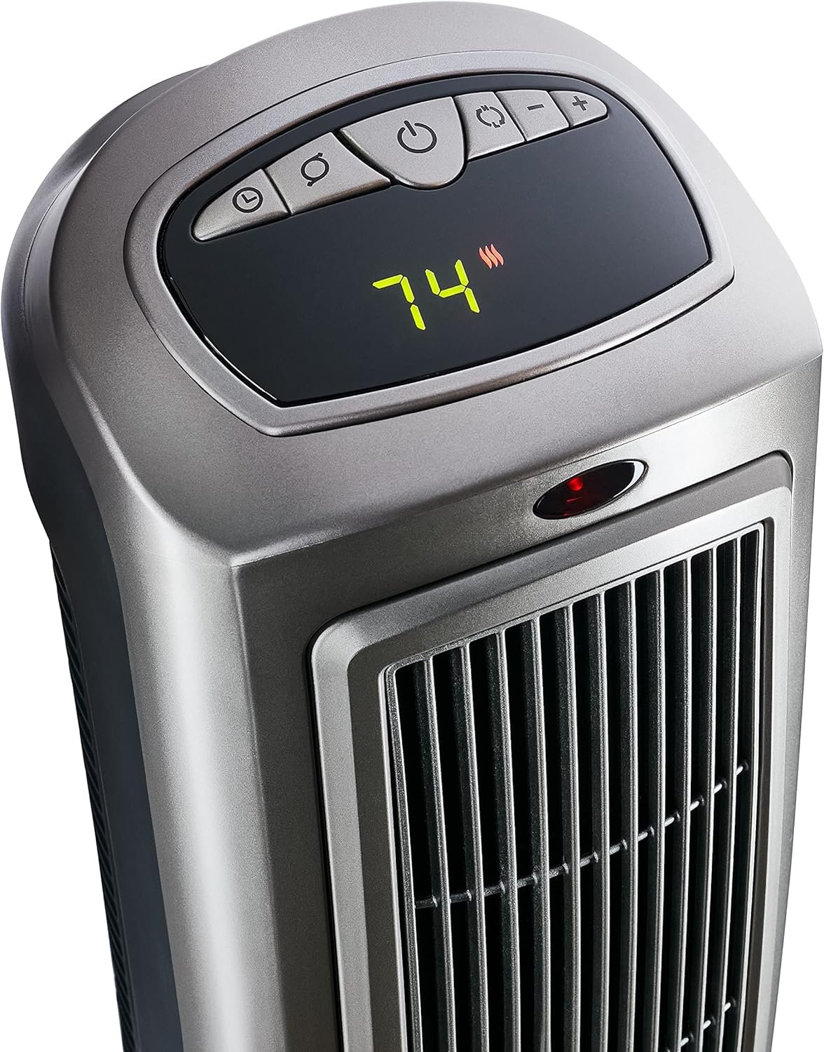 Lasko Oscillating Digital Ceramic Tower Heater for Home with Adjustable Thermostat, Timer and Remote Control, 23 Inches, 1500W, Silver, 755320