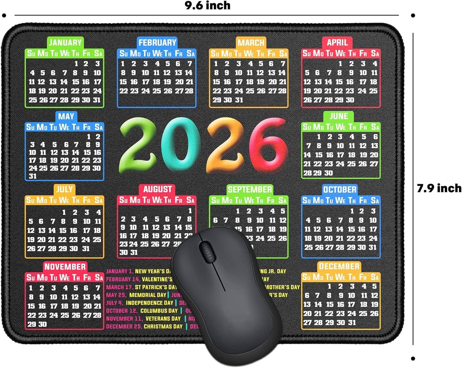 Mouse Pad with Stitched Edge, Computer Mouse Mat with Non-Slip Rubber Base, Mouse Pads for Computers Laptop Mouse 9.6×7.9×0.1 inch, (2026 Calendar Black)