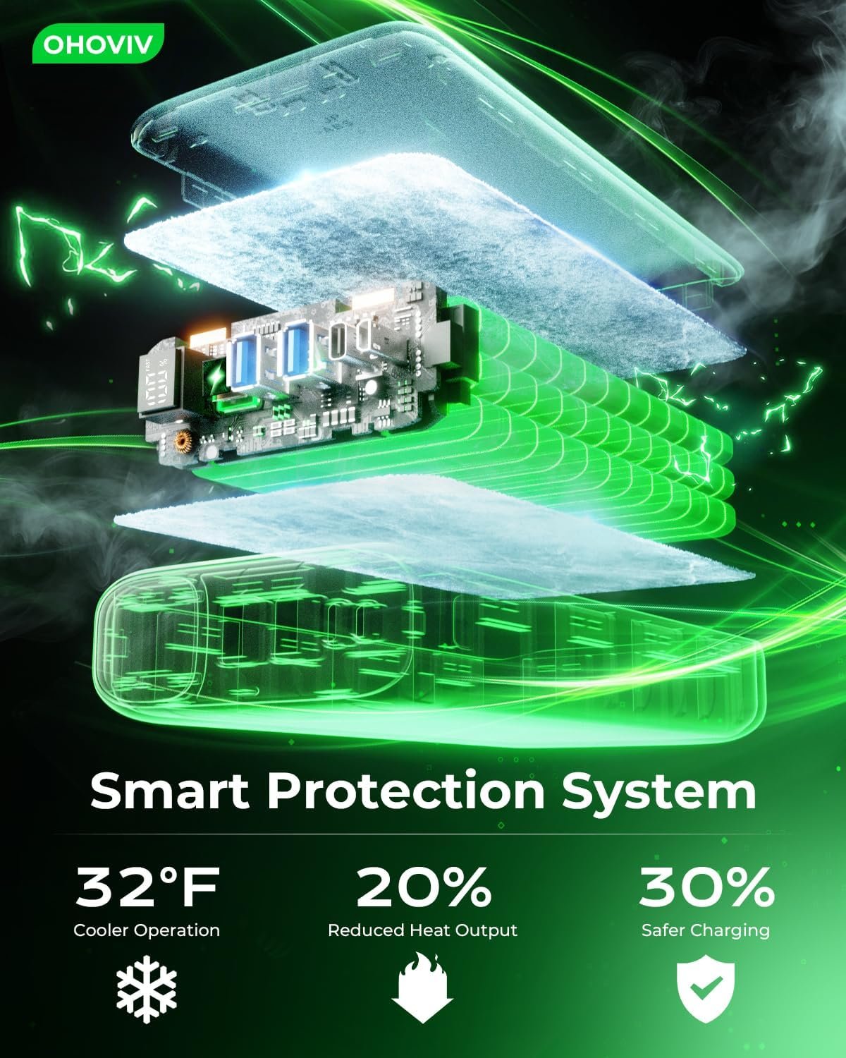 Safe Powerful Phone Charger – OHOVIV 50000mAh portable charger power bank with premium Li-polymer battery, this portable battery charger can charge your devices multiple times.Battery bank adopt smart chips to prevent overcharge, overvoltage, overcurrent, and short circuit to ensure customer safety.