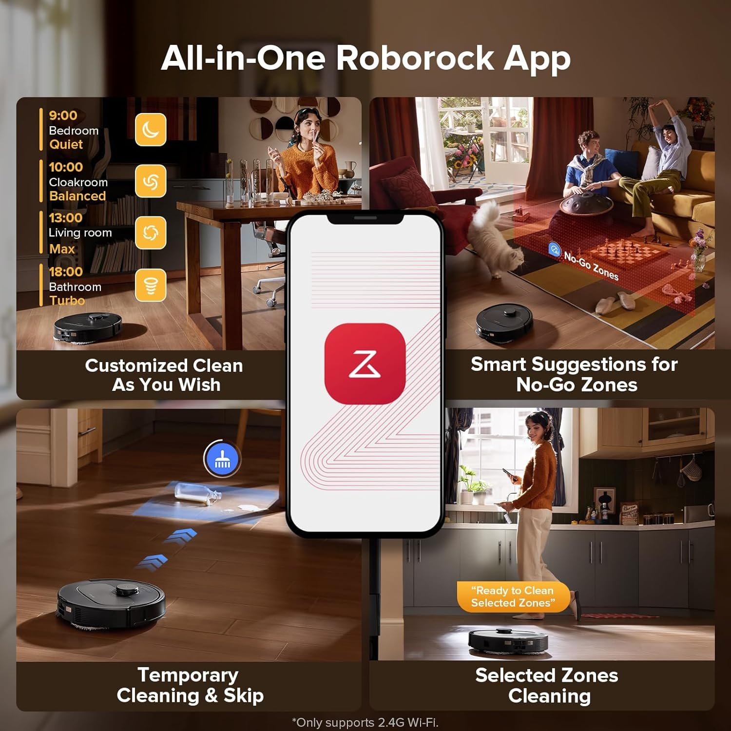 Roborock robot vacuum only supports 2.4G WiFi. Ensure your router operates on this frequency. If your home primarily uses a 5 GHz band, consider setting up a dual-band router or switching to a 2.4 GHz network for optimal performance.