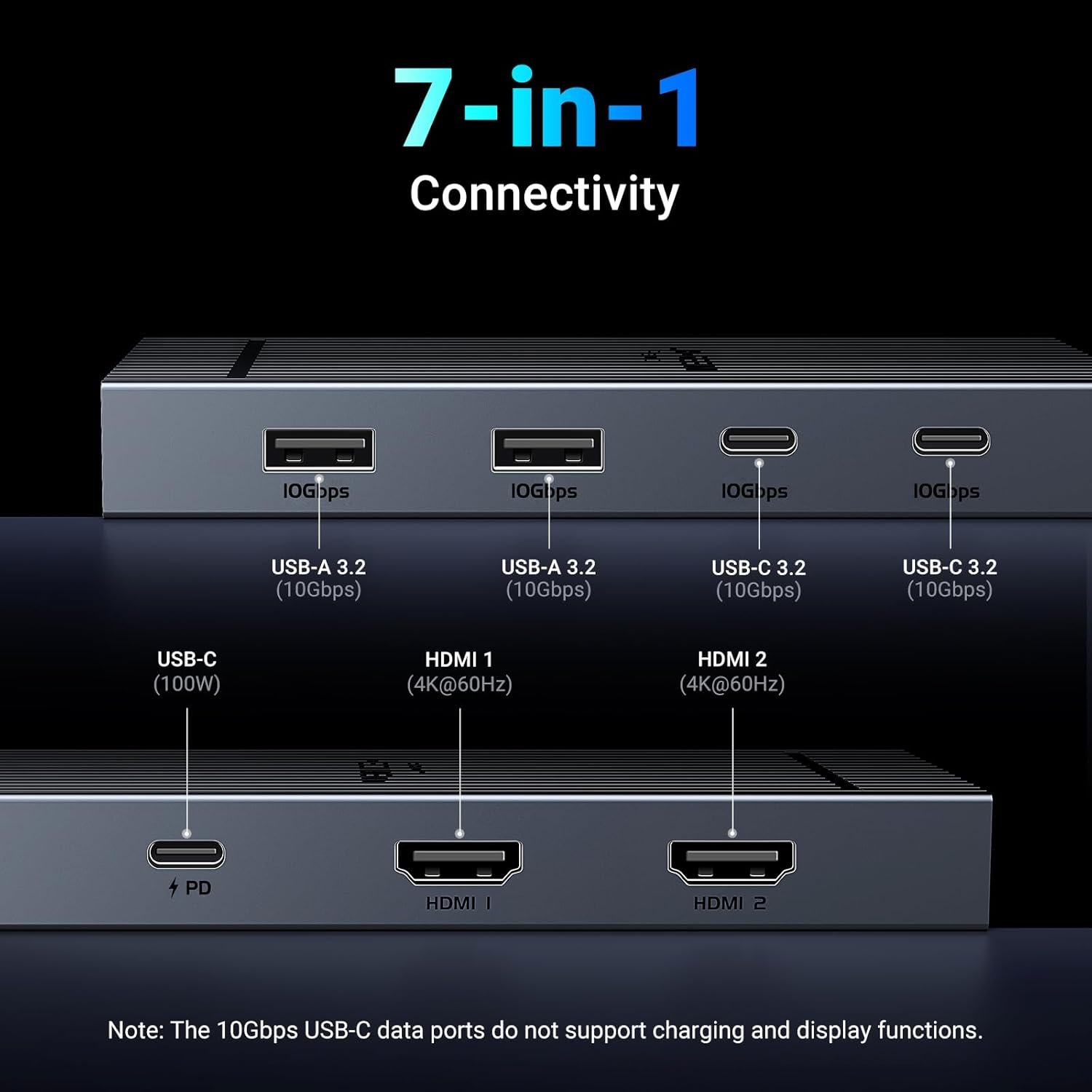 UGREEN 7 in 1 Docking Station Dual Monitor, USB C Hub Dual 4K@60Hz HDMI Display, 10Gbps USB-A/C Data Ports, 100W PD, Aluminum Revodok Pro Laptop Docking Station for HP, Thinkpad, Dell and More